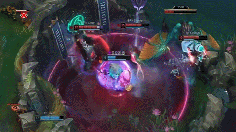 团队优势局面下进攻下路二塔位置,被BFX开团后Keria放出关键大招保全团队,多次立下大功帮助队伍赢下比赛。