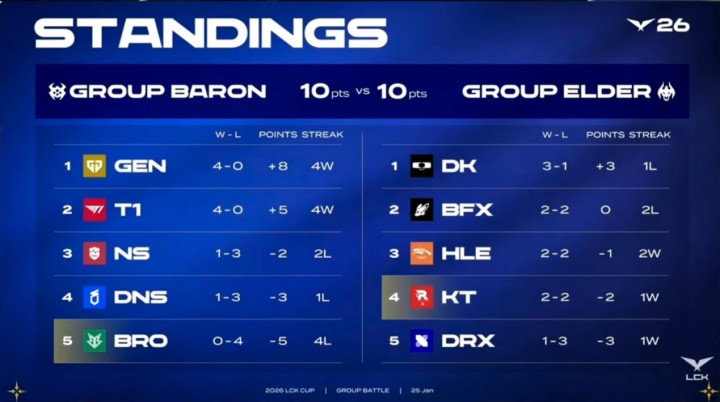 个人认为第一赛段最强的队伍还是GEN和T1,即使大龙组最后未能拿下分组对抗赛的胜利,说实话影响也不大,T1将有机会在第一赛段与GEN顶峰相见,大家可以期待一下后续LCK的局势发展。