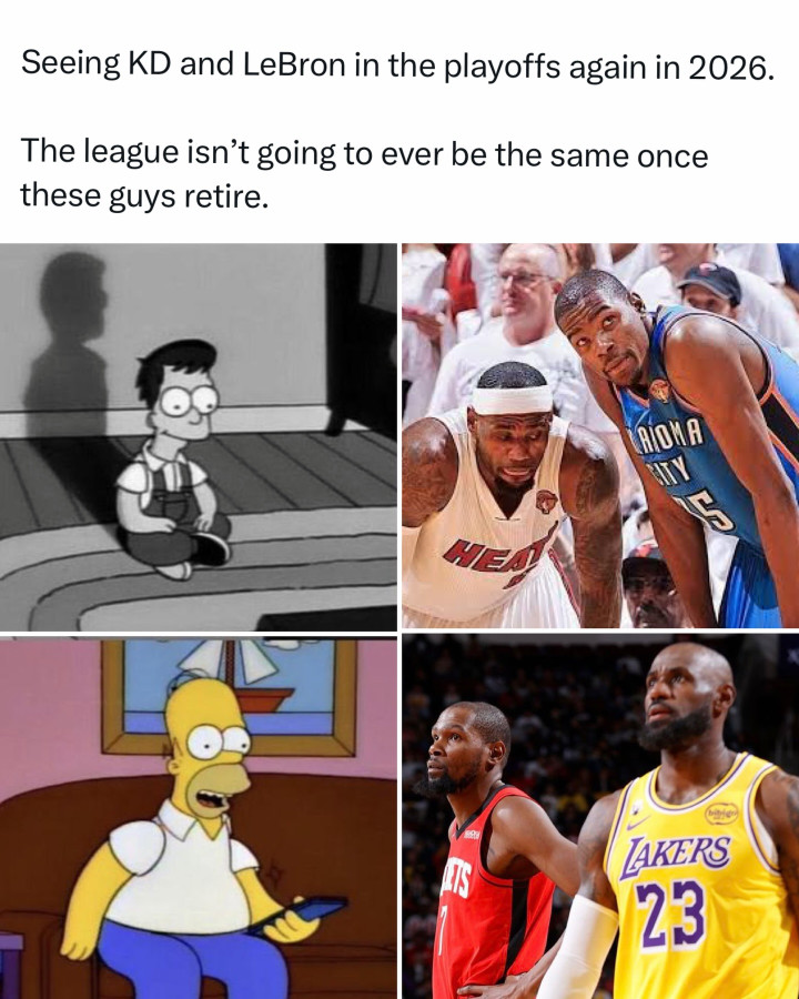 而且,这也是科比和姚明之后,我们再次看到湖人和火箭在季后赛相遇。这种相遇,对于老球迷来说,是一种久违的伟大对决。勒布朗詹姆斯和凯文杜兰特职业生涯那么多年,也上演过不少史诗级的季后赛对决。而这将是两人职业生涯中第四次在季后赛系列赛中正面交手,也有可能是最后一次。
