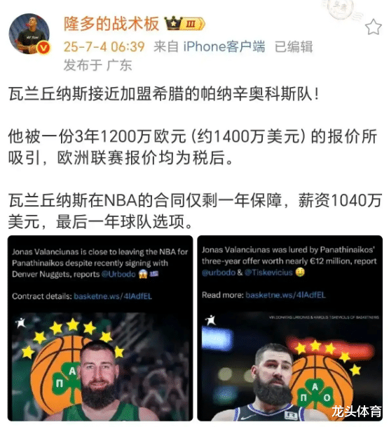 在年薪相差不少、合同年限更长、离家又近的情况下,瓦兰选择回到欧洲那边打球也是十分合理的。