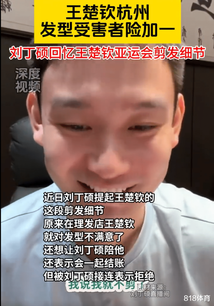 7月6日消息,2023年杭州亚运会期间,王楚钦因头发过长想去剪发,赛前与队友刘丁硕一同前往理发店。刘丁硕在直播中透露了王楚钦“蘑菇头”的来历,并且开玩笑说王楚钦要请自己也来一个,遭到了他的婉拒。