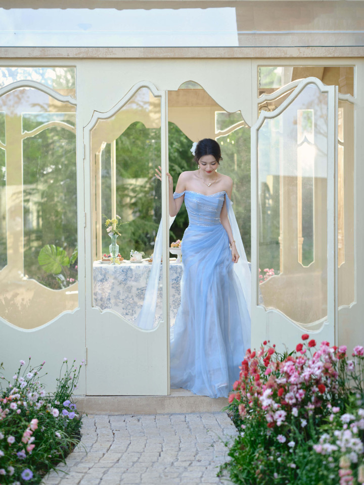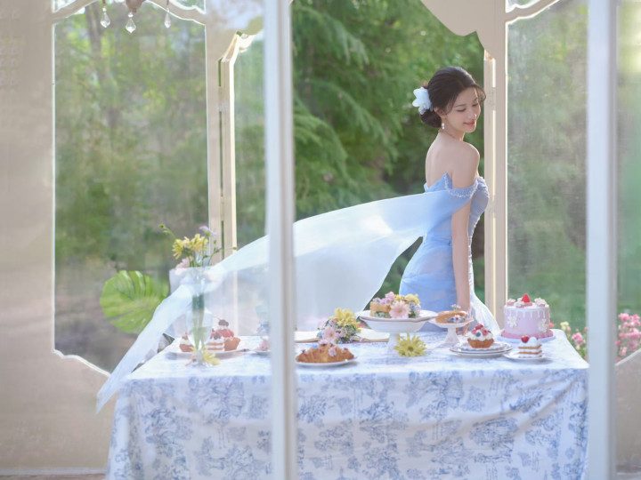 王楚然身穿一袭冰蓝纱裙也太美了吧!