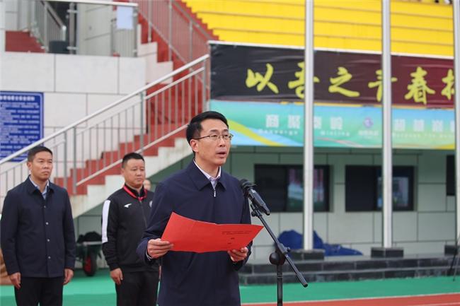 全体起立奏唱中华人民共和国国歌后,留坝县县委常委、人民政府副县长王雪科先生致欢迎词。他代表留坝县委、县政府,对各位领导、嘉宾的到来表示热烈欢迎,对中国人保等支持单位表示衷心感谢,对赛事工作人员、参赛代表队、运动员和裁判员致以诚挚问候。他指出,足球运动承载着梦想与激情,本次联赛是贯彻落实《全民健身计划》、推动“体育 +”融合发展的重要实践,对于营造活力健康的社会氛围、推动体育事业和文化旅游产业高质量发展具有重要意义。他还介绍了留坝县近年来在体育事业发展方面的举措和成效,希望全体参赛队员赛出风格、水平与友谊,裁判员秉持公平公正原则,观众文明热情助威。