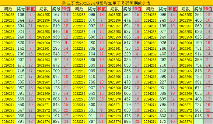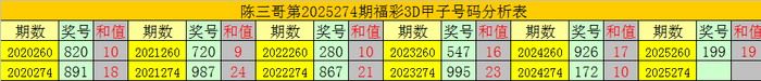 陈三哥3D第2025274期甲子号分析: