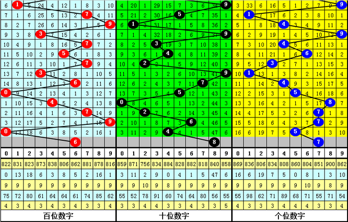 其中,组三出现10次,组六出现13次,单选0-9分别开出: