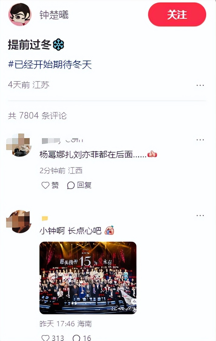 如此行为,直接让钟楚曦成为了“众矢之的”,社交平台上的个人账号评论区,直接沦陷。