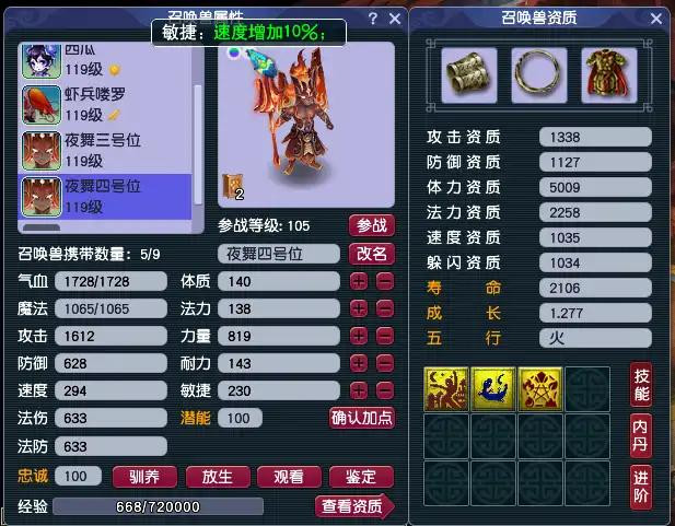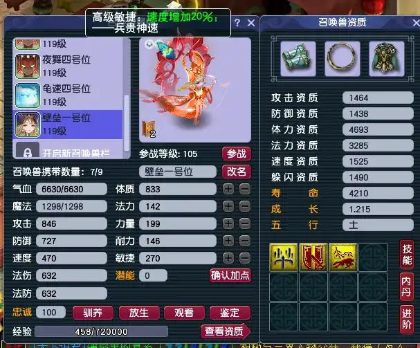首先日常进阶30+无论是全力连善还是全红须弥,都已经被怪物抗性克制的死死的,有的甚至只能打一两百,所以这时候就凸显出来夜舞宝宝的必要性。尤其是7层以前,人物伤害还没有提升上来,很多时候要依靠夜舞宝宝来担当主要输出。夜舞宝宝的要求很低,129以上可以直接洗夜舞+高敏的小夜练起来直接用,109可以合龙游夜舞或克敌五行夜舞,尤其是克敌五行夜舞,由于山神必带技能是克敌五行,所以成功率很高,成本的话也很低。